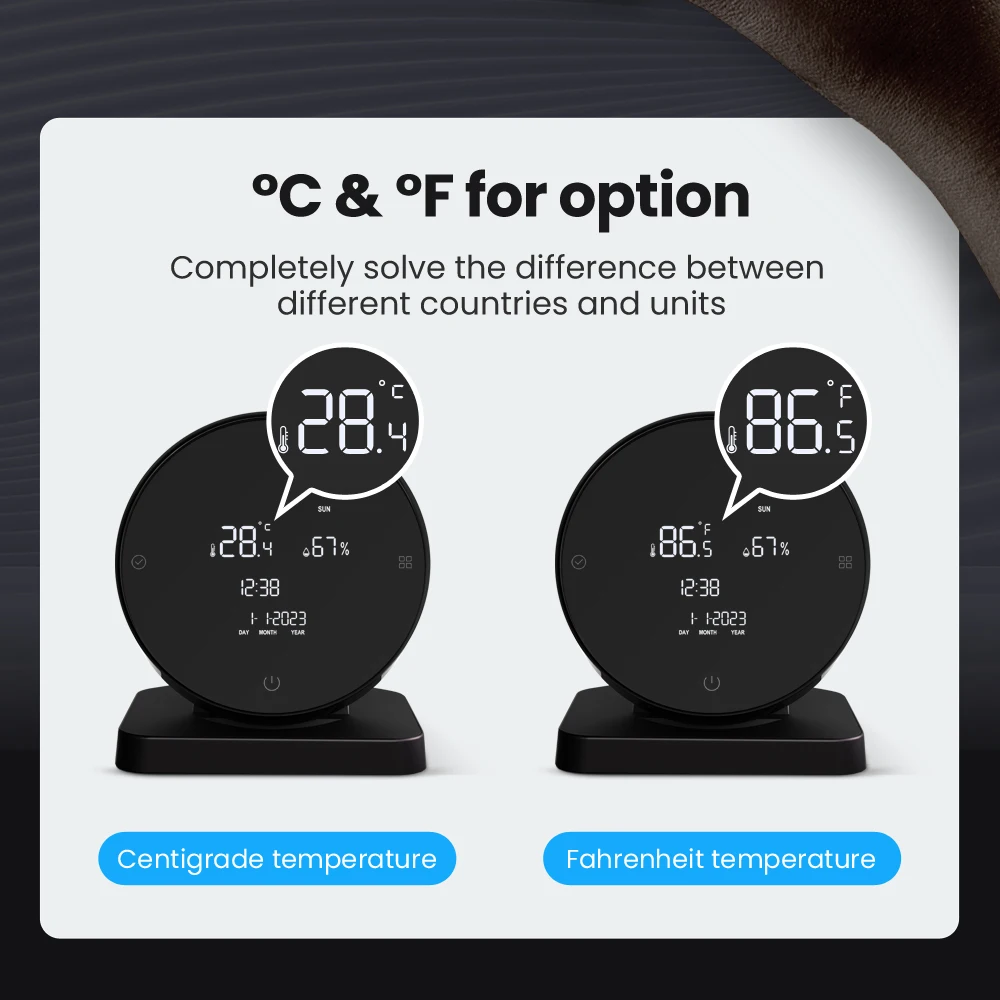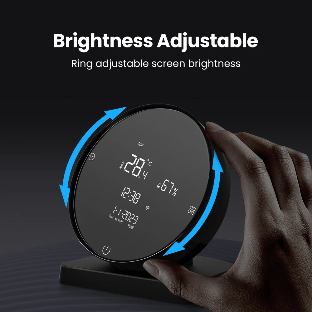 【Sensor de temperatura e umidade WiFi】-Botão de toque, design clássico, tela espelhada