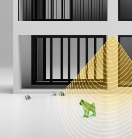 Animais de estimação de até 30Kg não precisam ficar isolados para o sistema de alarme ser armado. Com a função PET, o sensor inteligente não detecta pequenos animais, ou seja, não há disparos do alarme.
