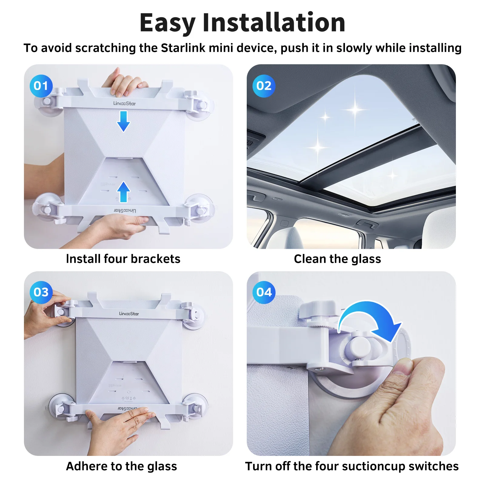 Este suporte foi desenvolvido especialmente para atender às necessidades dos usuários Starlink que buscam praticidade e firmeza na instalação. Com quatro ventosas reforçadas de alta aderência, você pode fixar seu Starlink Mini em superfícies lisas, como vidros, painéis metálicos ou plásticos, garantindo máxima estabilidade mesmo em condições adversas.